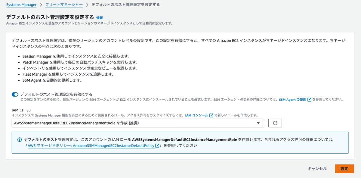 ※以前はEC2インスタンスごとの設定が必要でしたが、デフォルトのホスト管理設定(DHMC、Default Host Management Configuration)を用いることで一括して設定することができます。